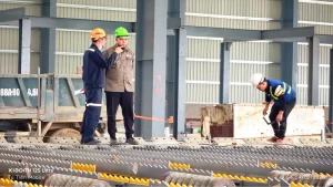 Lắp đặt thiết bị máy sàn nguội tại Nhà máy cán thép VNA – Ảnh: VNS.